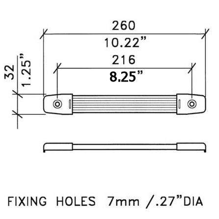 10 1/4". Screws are 10-32 thread. Choose