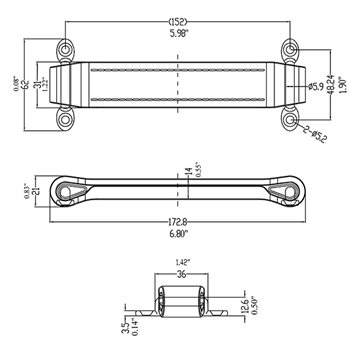 length is 6-13/16 inches (6.80"), center-to-center mounting distance is 6