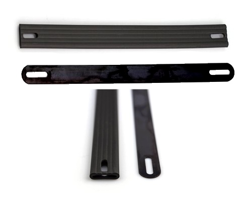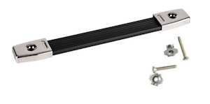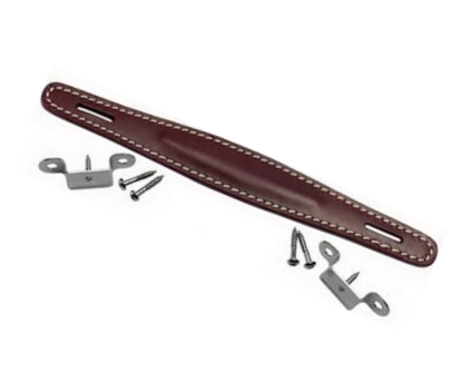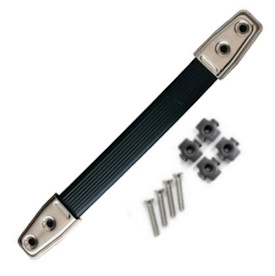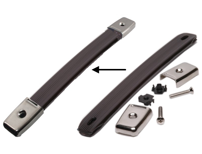 Rugged rubber black handle strap, steel reinforced. Black metal caps. Screws not included - recommend using