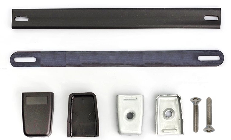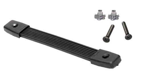 our SC-403B Black 10-32 type screws along with a 10-32 T-Nut for secure mounting. Handle strap is 7/8"
