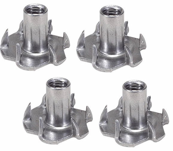 Premium-quality steel T-nuts feature six razor-sharp teeth and extra-long barrels.