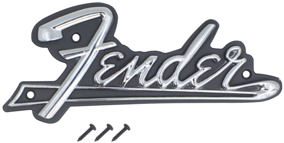 Fender™ tweed amp logo includes mounting pins and is designed for the following