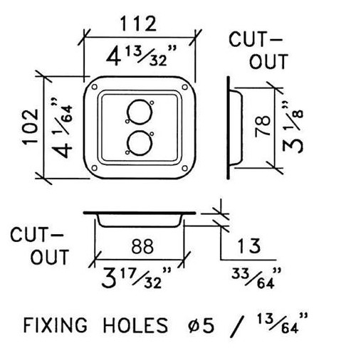 Requires a 3 inch x 3-7/16 inch rectangular hole cut in the cabinet. Direct easy replacement for many existing small jack dishes. No soldering required. Complete wiring directions included - click here for more details.