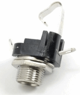 Handy way to add a power jack for an AC/DC Adapter to an existing devices. Connector fits the popular 2.1mm x 5.5mm barrel plug found on many adapters. Normally closed switch, so that an internal battery may be switched on or off automatically as the adapter is connected. Plastic housing isolates both conductors, so it may be used for either center positive or center negative adapters. Fits 1/2" chassis hole.
