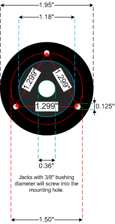 Switchcraft #11 jack preinstalled with lock washer and trim washer. Outside diameter 2 inches (51mm). Minor assembly required. Designed to fit flush against a 1 1/8" (29mm) cabinet hole. Easy to install - drill 1 1/8" hole in cabinet, attach speaker wiring to jack and speaker, attach plate to cabinet.