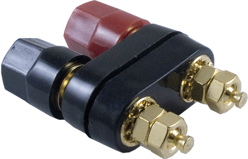 Used on the rear panel of many power amplifiers. Red and black posts,