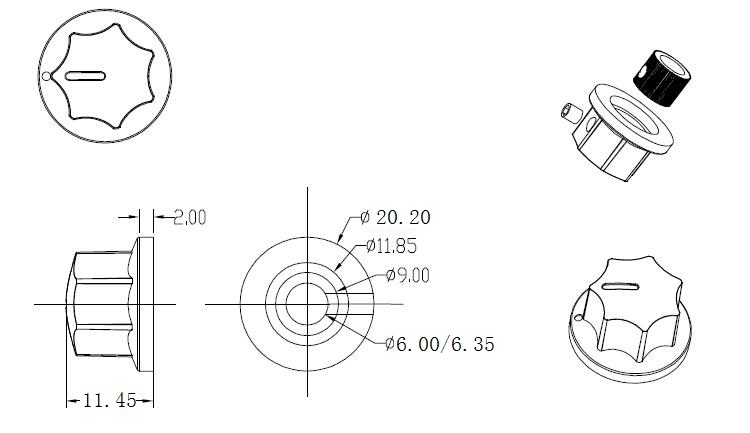 knobs. Designed for the "knurled" split-shaft potentiometers.