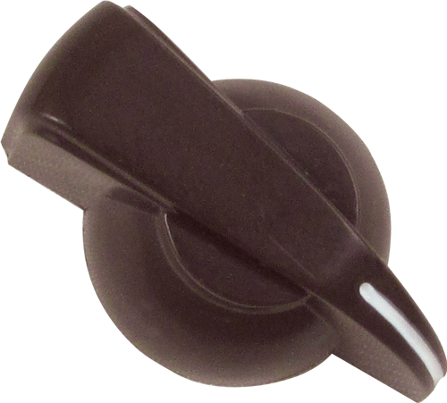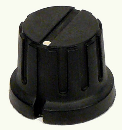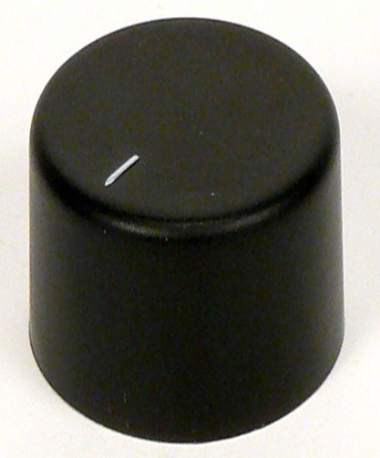 KNOB, BLACK KNOB WITH WHITE LINE, SET SCREW WITH BRASS INSERT.