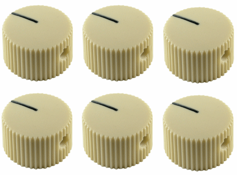 Used in Fender™ and many other retro style amps. Cream. Fits 1/4" shaft, brass insert, with set screw.
