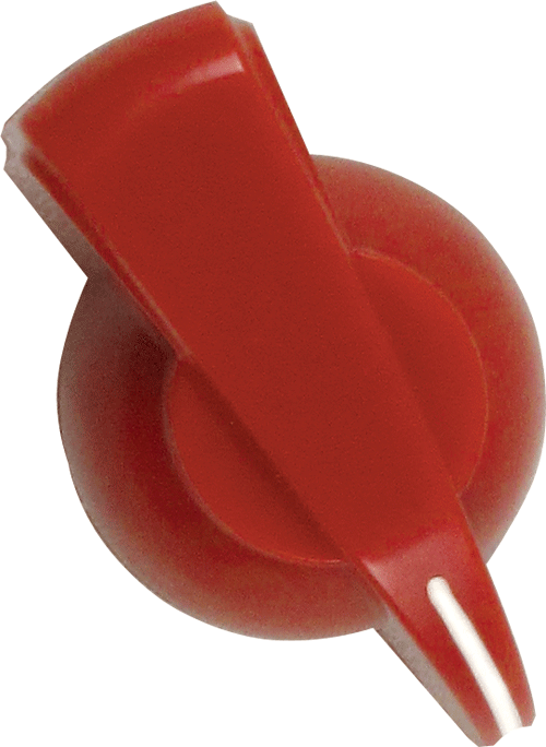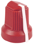 Used in Fender™ and many other retro style amps. Red. Fits 1/4" shaft, brass insert, with set screw.