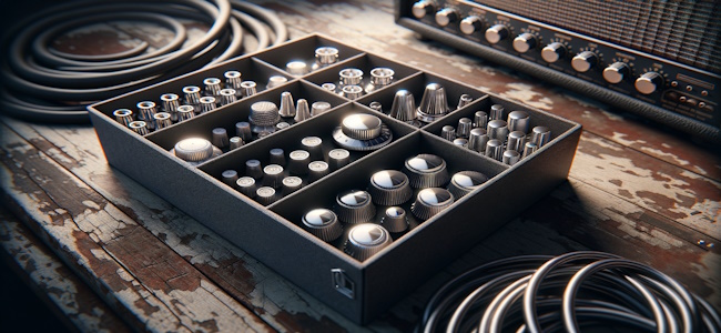 applications such as effects pedals. Black with white indicator. Fits 1/4"