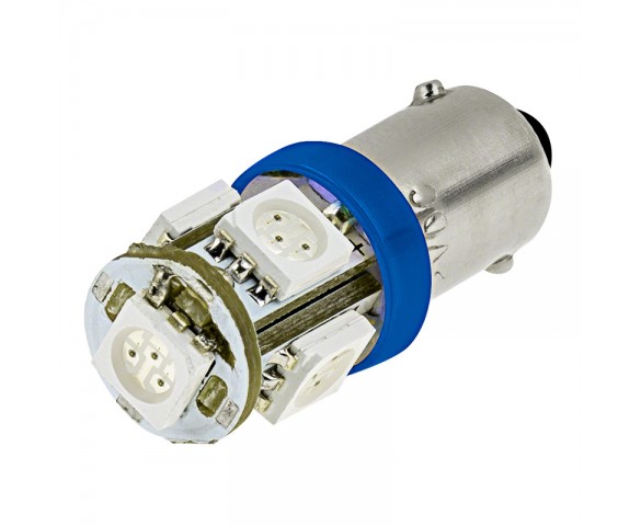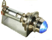 present). The LED replacement is long lasting, runs much cooler, and is substantially brighter than the P-47 incandescent bulb. Works on 6 volts, AC or DC. Output color is cool blue. When used with different colored jewels,
