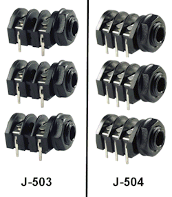 Stereo jack. 6 PC board terminals, switched. Pack of 6 jacks, with