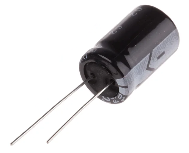 Electrolytic 2200uF @ 63V with radial snap-in leads.