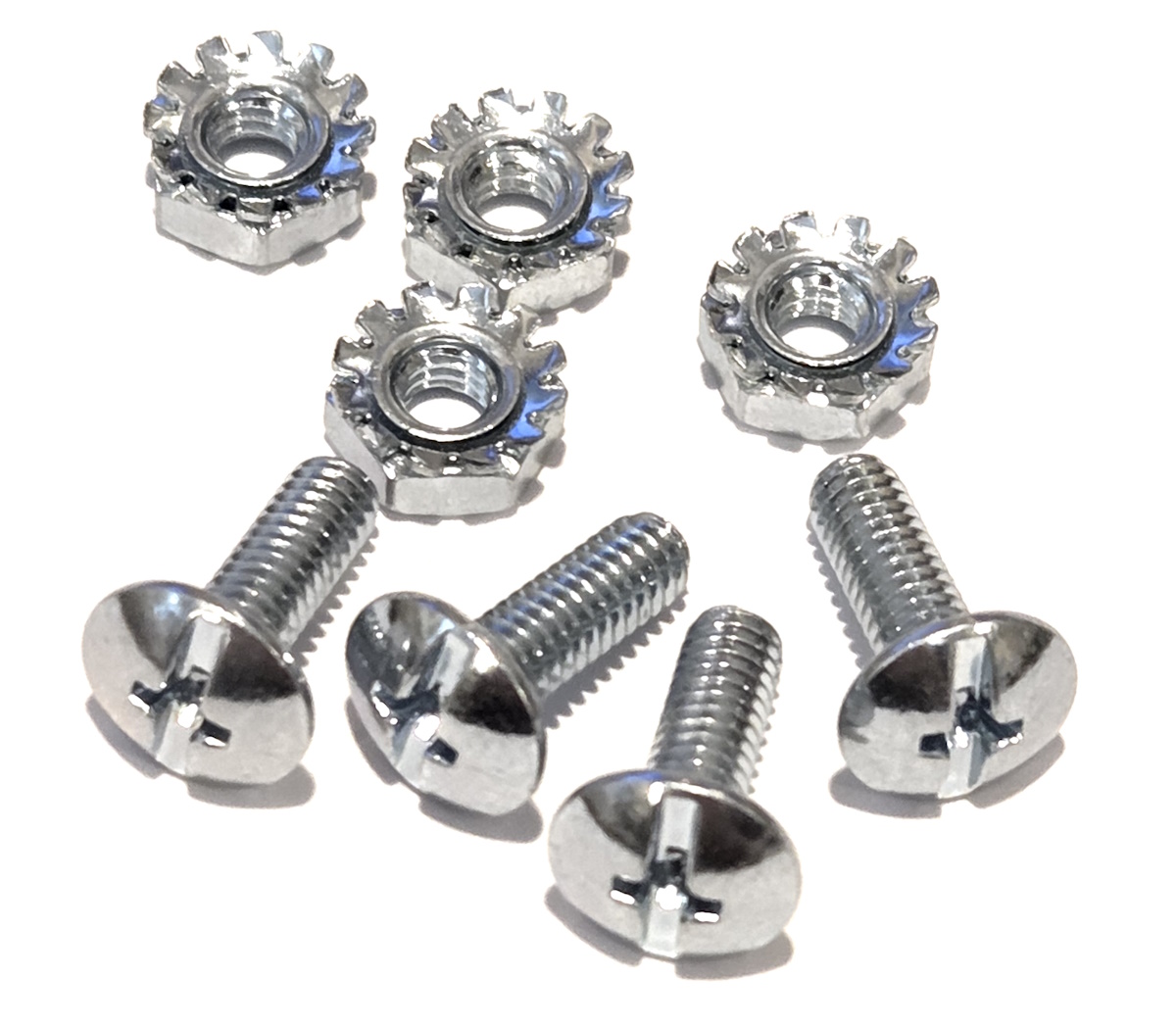 screws, 1/2 inch long, and 4 8-32 KEPS hex nuts with built-in locking washer.