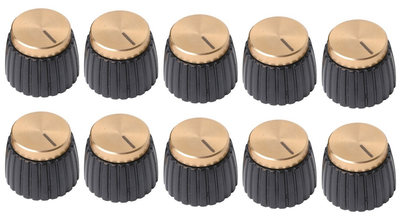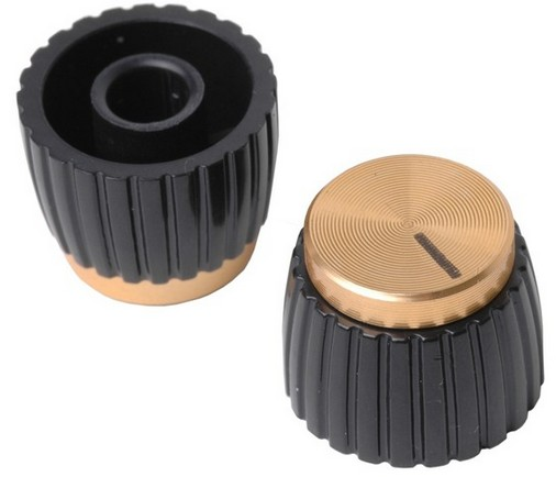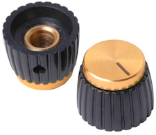 knobs. Black with gold top. Designed for the "knurled" type control