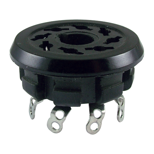 TUBE SOCKET FOR MINIATURE 9-PIN TUBES. EXACT REPLACEMENT FOR MANY MAKES AND MODELS OF AMPS WITH HAND-WIRED TUBE SOCKETS. Fits 12AX7, 12AU7, 12AT7, 6BQ5, EL84 tubes. For 3/4" hole. Top mounting (mounted from the outside of the chassis), mounting holes spaced 1 1/8" apart. Designed to work with the TR-144 or TR-146 tube retainers, or the TS-325S tube shield.