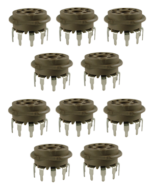 10-PACK, TUBE SOCKET FOR MINIATURE 9-PIN TUBES. PC MOUNT, MICALEX. 9 pin ceramic PC mount socket, stand-off mounting,