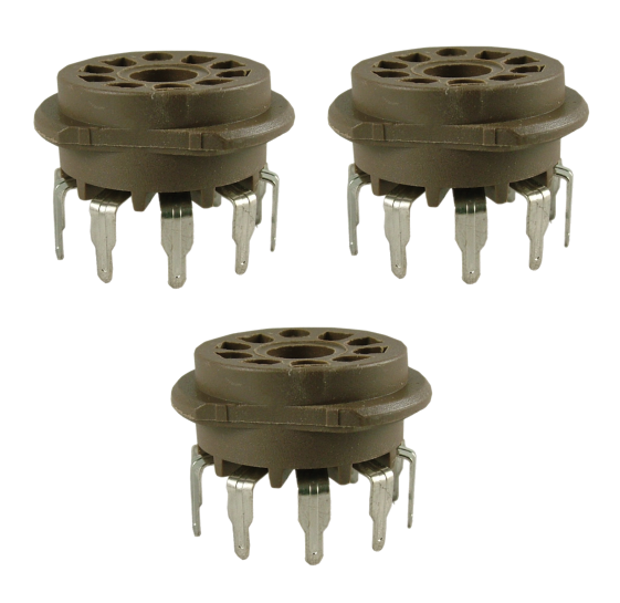 3-PACK, TUBE SOCKET FOR MINIATURE 9-PIN TUBES. PC MOUNT, MICALEX. 9 pin ceramic PC mount socket, stand-off mounting,