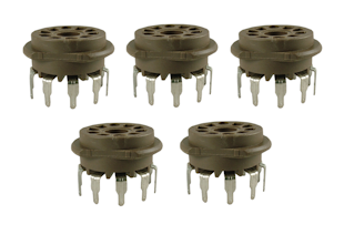 5-PACK, TUBE SOCKET FOR MINIATURE 9-PIN TUBES. PC MOUNT, MICALEX. 9 pin ceramic PC mount socket, stand-off mounting,