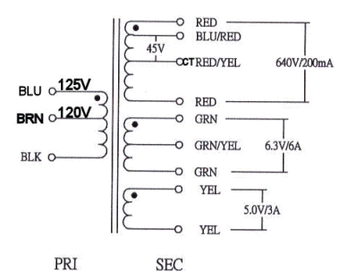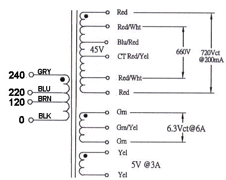 Reverb, '68 Custom Super Reverb, '63 Vibroverb, '64 Custom Vibroverb, '68 Custom Vibrolux), the 3 wires on the primary side of the transformer